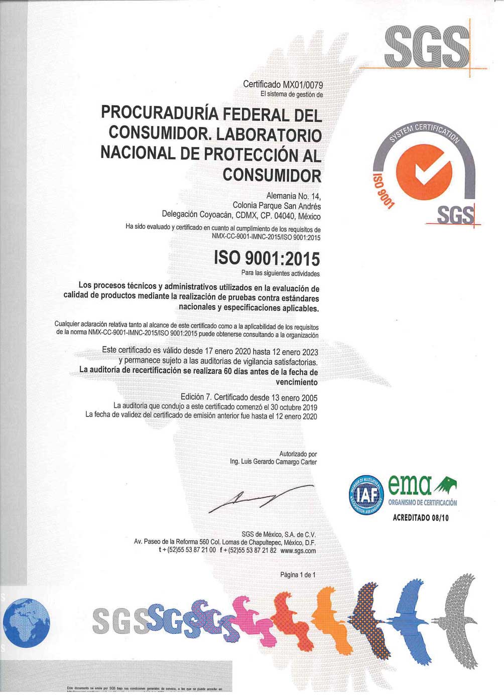 Por este motivo, la Dirección General de Laboratorio Nacional de Protección al Consumidor ha implementado un sistema de gestión de la calidad que se adecúe a sus especificaciones, el cual es evaluado por un organismo competente, en términos de la Ley de Infraestructura de la Calidad –antes, la Ley Federal sobre Metrología y Normalización–.